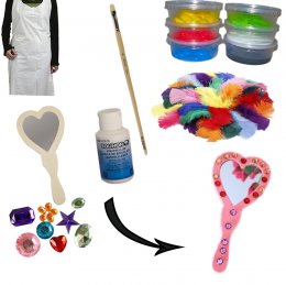 Zodra de verf droog is, kan de handspiegel mooi versierd worden met sierstenen en figuurtjes van foam.