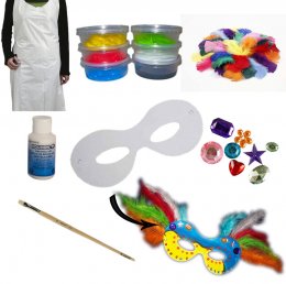 Zodra de verf droog is, kan het masker mooi versierd worden met sierstenen en figuurtjes van foam.