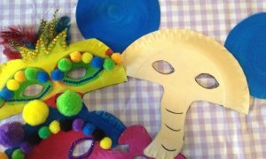 Heb je nog papieren borden liggen? Dan kun je daar ook maskers van maken.