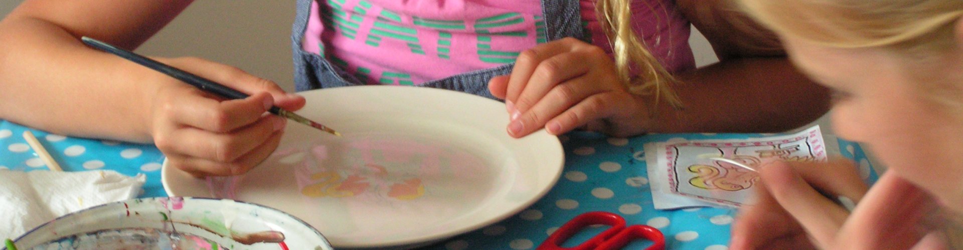 - Zet het servies, stiften, carbonpapier en potloden klaar. Leg ook wat keukenrol op tafel. Hiermee kunnen de kinderen hun bord of beker afnemen.