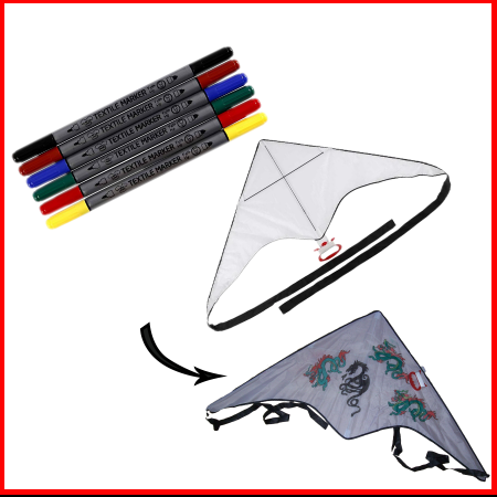Laat ieder kind de mouwen opstropen. Nu kunnen de kinderen de vlieger mooi gaan versieren. De textielstift waar